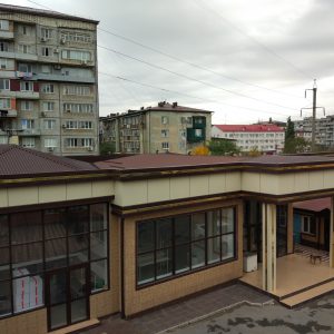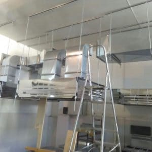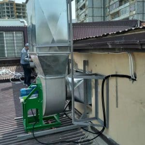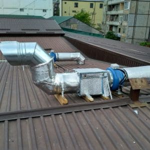 • Вытяжная вентиляция горячего цеха на базе радиального двигателя с частотным регулированием и зонтами из нержавеющей стали