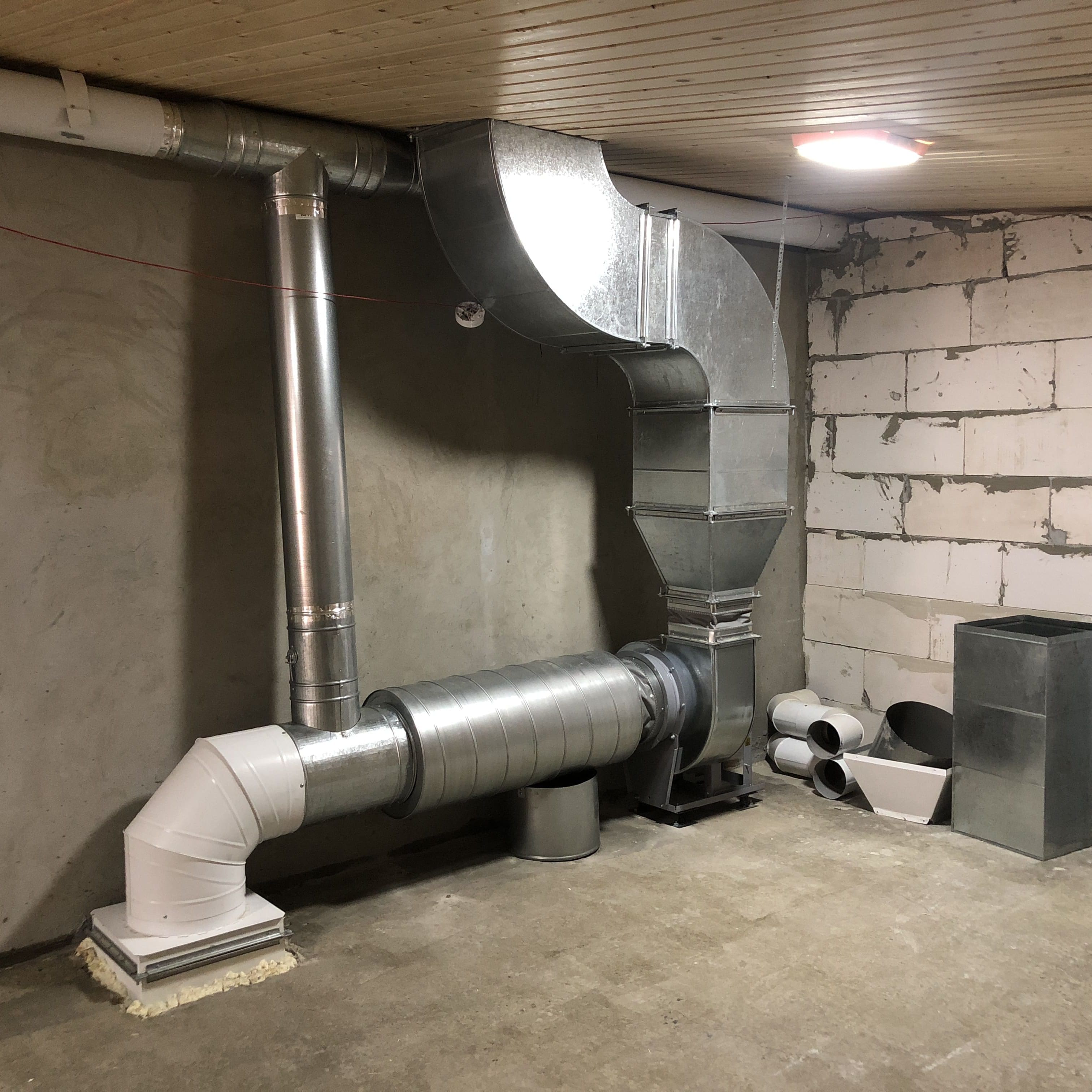 Сеть воздуховодов из тепло-шумоизолированного материала PIRALLU, гибких воздуховодов, воздуховодов из оцинкованной стали.