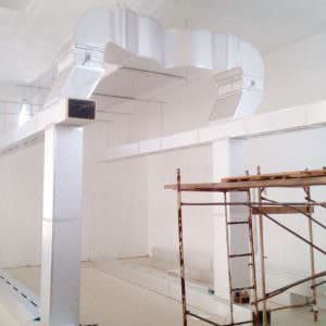 Тип системы: Воздуховоды из тепло-шумоизолированного материала PIRALLU, система частичной рециркуляции в холодное время года, Два мощных двигателя VENTS 1000×500 один на приток другой на вытяжку будут обеспечивать обдув.