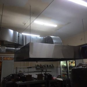 • Система вытяжной вентиляции на базе радиального двигателя с частотным регулированием и кухонным заводским зонтом из Московской области⠀